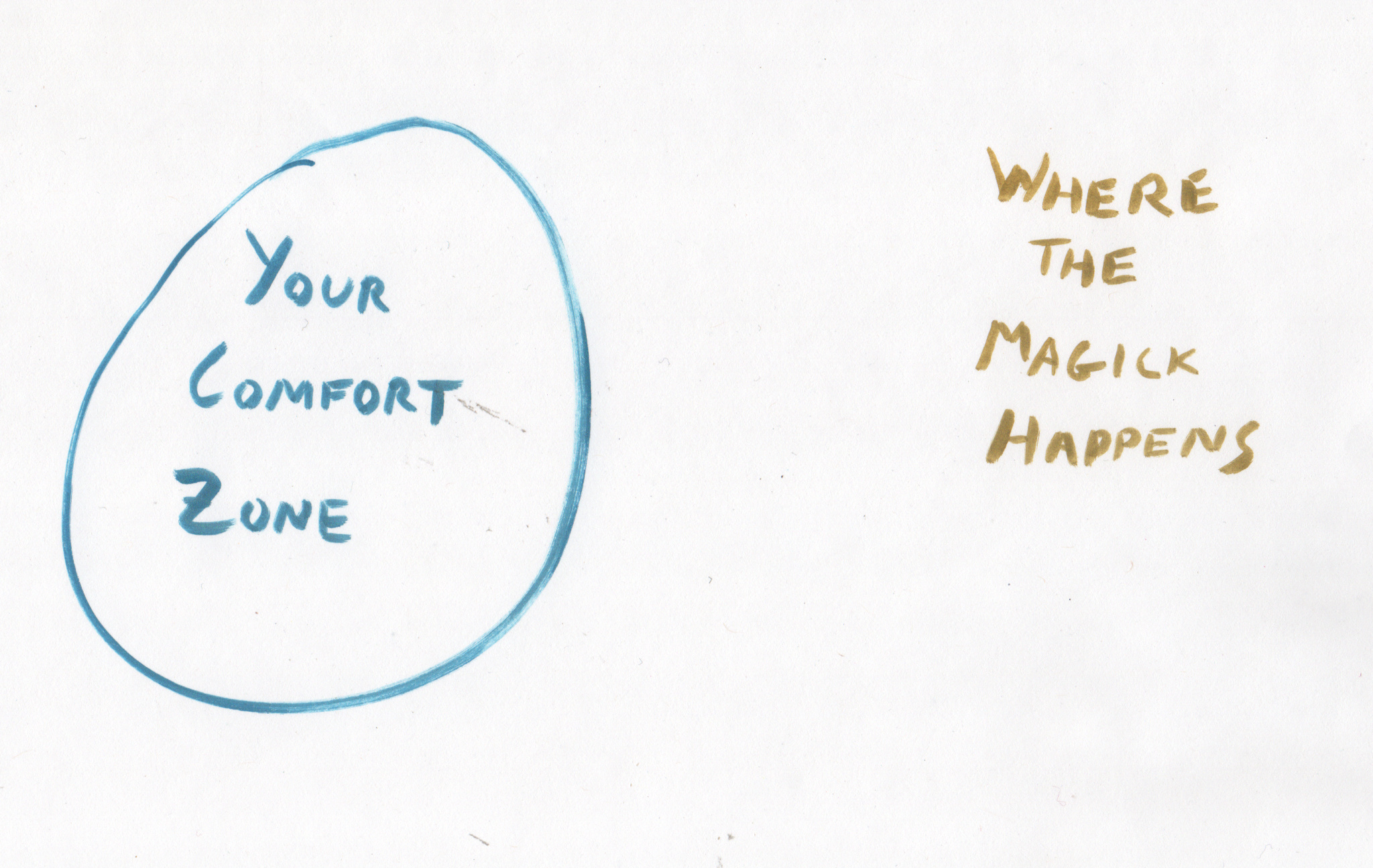Part of the idea is, “If I can do this weird thing outside my comfort zone — if I can dance naked around this fire in the moonlight while my friends play drums — then I can do this other difficult thing to which I have set my intention.”